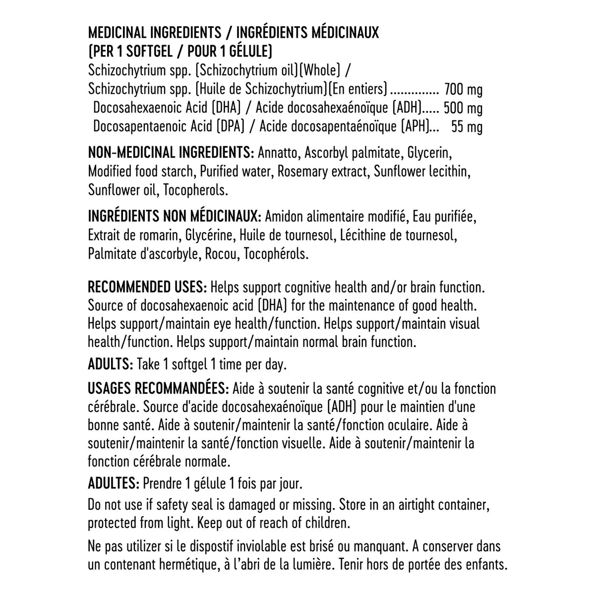 • 500 mg DHA and 55 mg DPA per tapioca softgel.