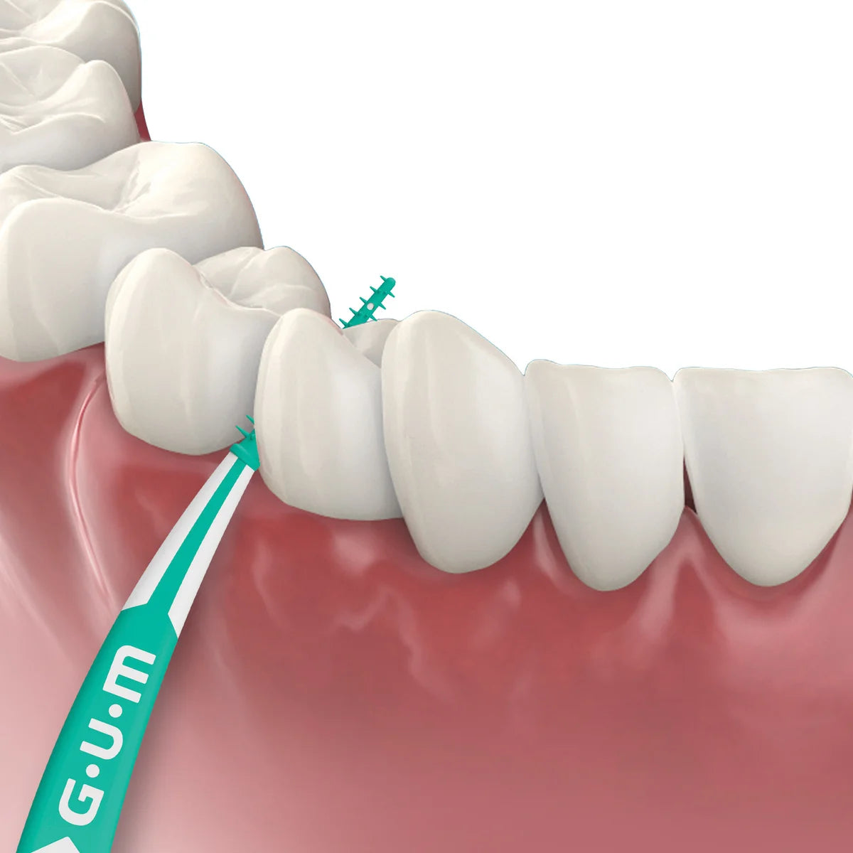 Featuring soft rubber bristles for a comfortable clean with a longer, curved handle for pinpoint precision and a deeper reach. Flexible synthetic rubber bristles easily fit between teeth to massage the gums, dislodge food and disrupt other particles. GUM Soft-Picks Advanced specialize in dental plaque removal in areas toothbrushes can't reach. GUM Soft-Picks are great to take with you for a quick cleaning after meals and snacks wherever you are. They are compact, light, and easy to slip into a pocket or a purse and come with a slim on-the-go carrying case. Take them with you anywhere you need a quick teeth cleaning. Orthodontic appliances, implants, and bridges can be especially hard to clean around, but these soft bristles are great for gently getting into tight spaces.