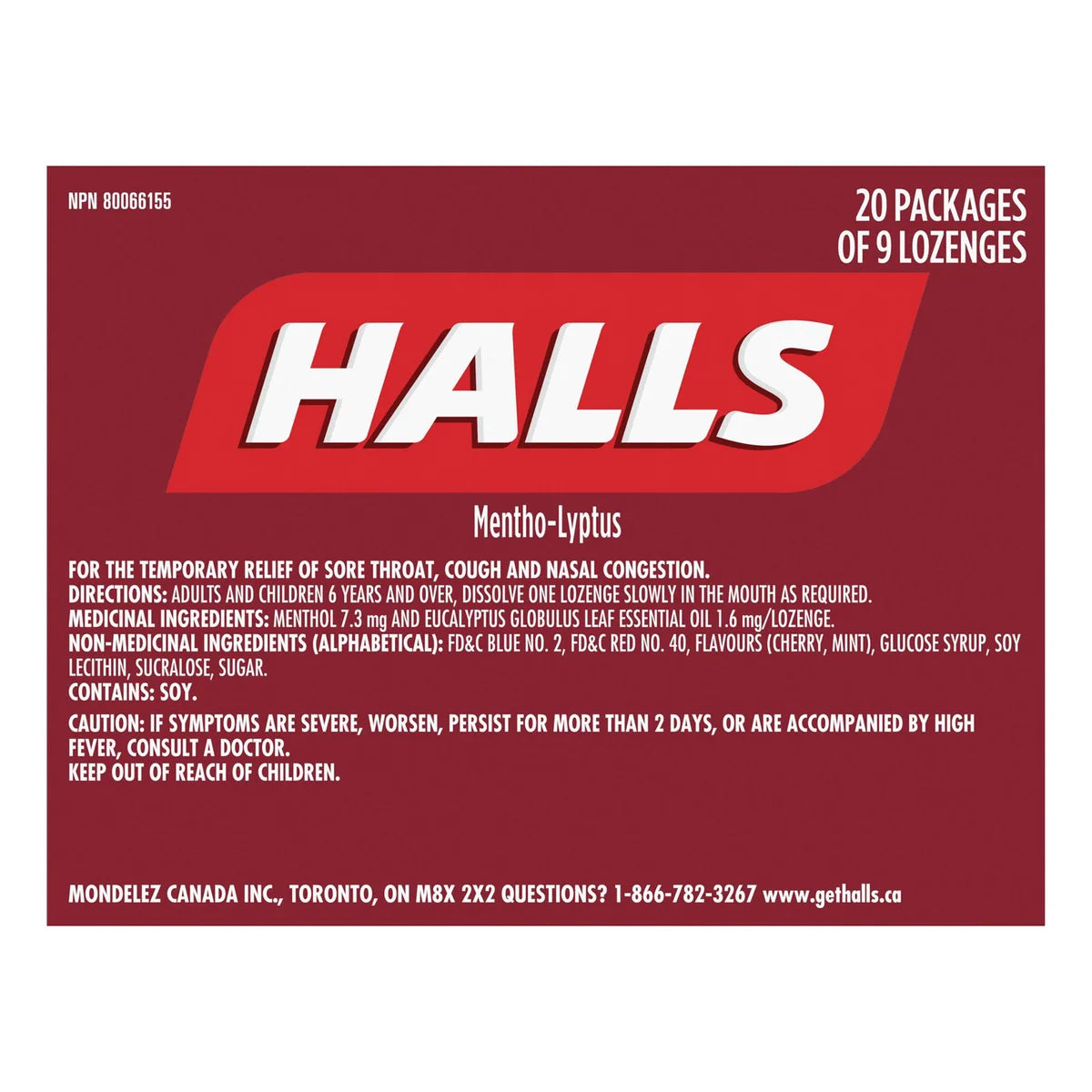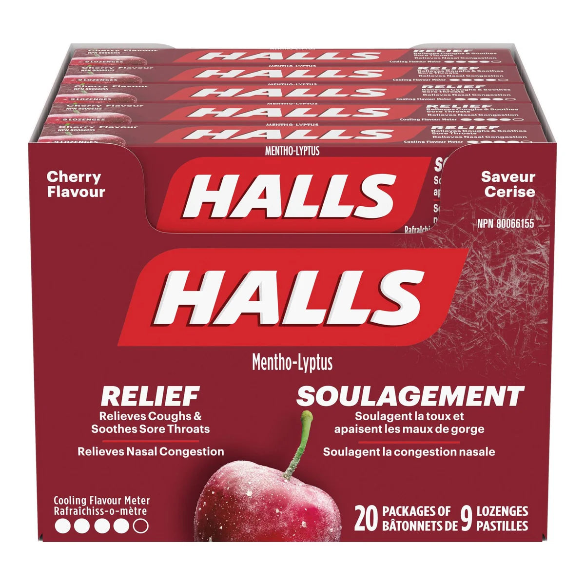 Halls Cherry Flavour Cough Drops, 20 × 9 lozenges