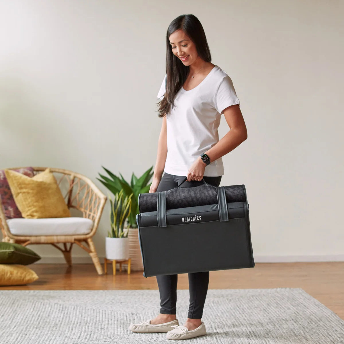 - Easy-carry handle lets you get your stretch on even on-the-go