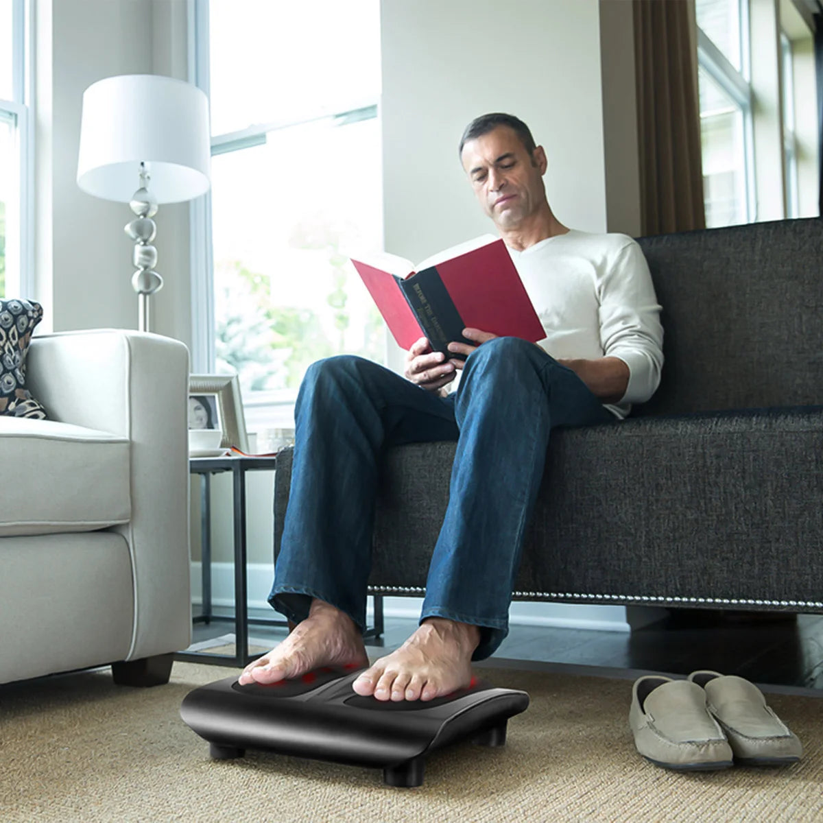 The HoMedics triple action Shiatsu Foot Massager gives a deep kneading shiatsu massage that relaxes and soothes your feet. Multiple options give you total control: triple rotational heads deeply massage entire foot, 18 massage nodes, and soothing heat lets you have your perfect shiatsu experience. Easy to use toe-touch control makes operation simple and straightforward. Not recommended for use by diabetics.