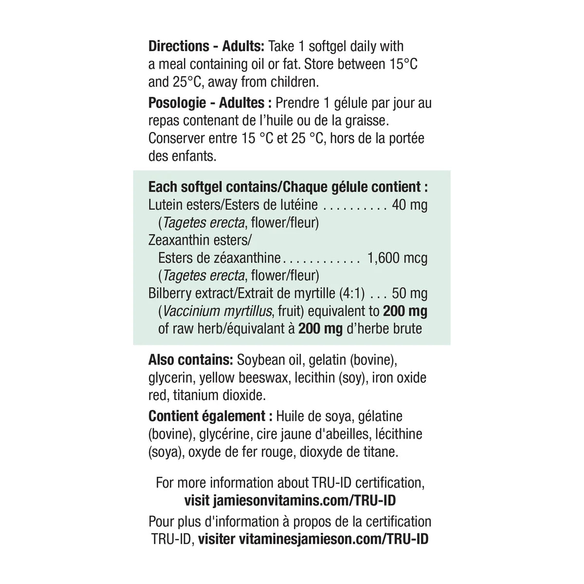 Jamieson Lutein 40 mg with Zeaxanthin & Bilberry, 3 x 60 Softgels