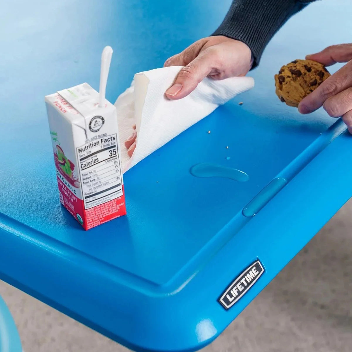 Give your kids the tools they need to learn and play with the Lifetime kid’s table and chair set. Keep things low maintenance and clean with the stain-resistant surface and perimeter collection tray. Chairs are stackable for easy storage.