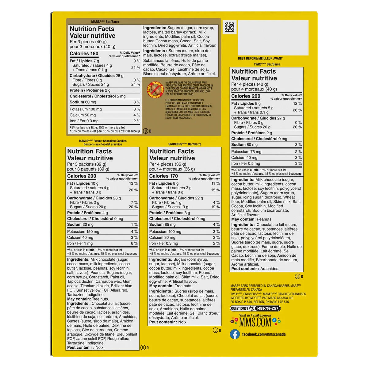 Halloween means parties, costumes and trick-or-treating, and Mars Chocolate has special ways to celebrate Halloween with your favourite chocolate candies in spooky seasonal packaging. Enjoy all the brands you love: Mars, M&M's Peanut, Twix, and Snickers. These assorted individually wrapped variety mix box are festive party favours, tasty chocolate treats, Halloween candy bowls fillers and wonderful additions to any trick-or-treat bag!