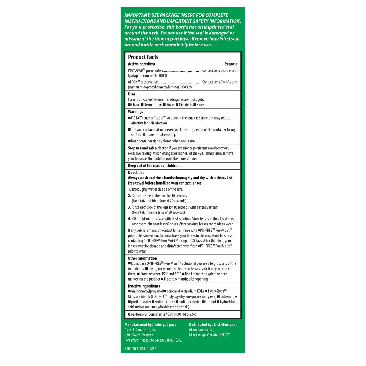 • Contact Lens Multi-Purpose Disinfecting Solution: Opti-Free PureMoist cleans, reconditions, rinses, disinfects and stores all soft contact lenses, including silicone hydrogels