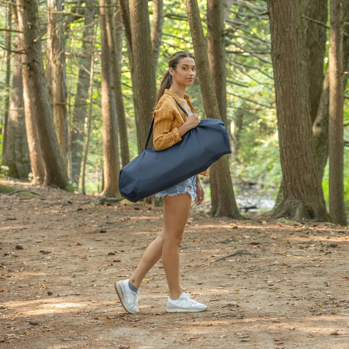 No matter the season, you can relax and enjoy your outdoor adventures with this swinging hammock chair with a built-in footrest. The chair sets up easily and folds into a carry bag for simple storage. The rugged seat cover is made of breathable, water-resistant polyester that keeps you cool on warm days in the sun, and keep you warm on cool nights. The adjustable footrest strap lets you rest your feet while you lay back and relax. This chair brings the comfort of home to the campground, festival, and anywhere else you want to get away to.