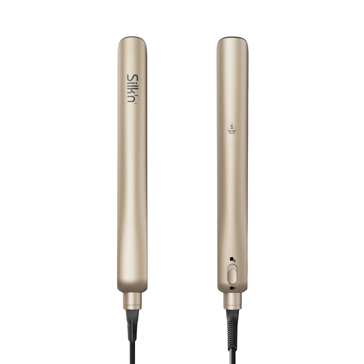 Meet our newest hair straightener, SilkyStraight. With infrared technology and negative ions, it protects your hair, reduces frizz, and cuts styling time. The flexible titanium plates work on all hair types. Whether you want sleek straight hair or flirty curls, this is the device for you.