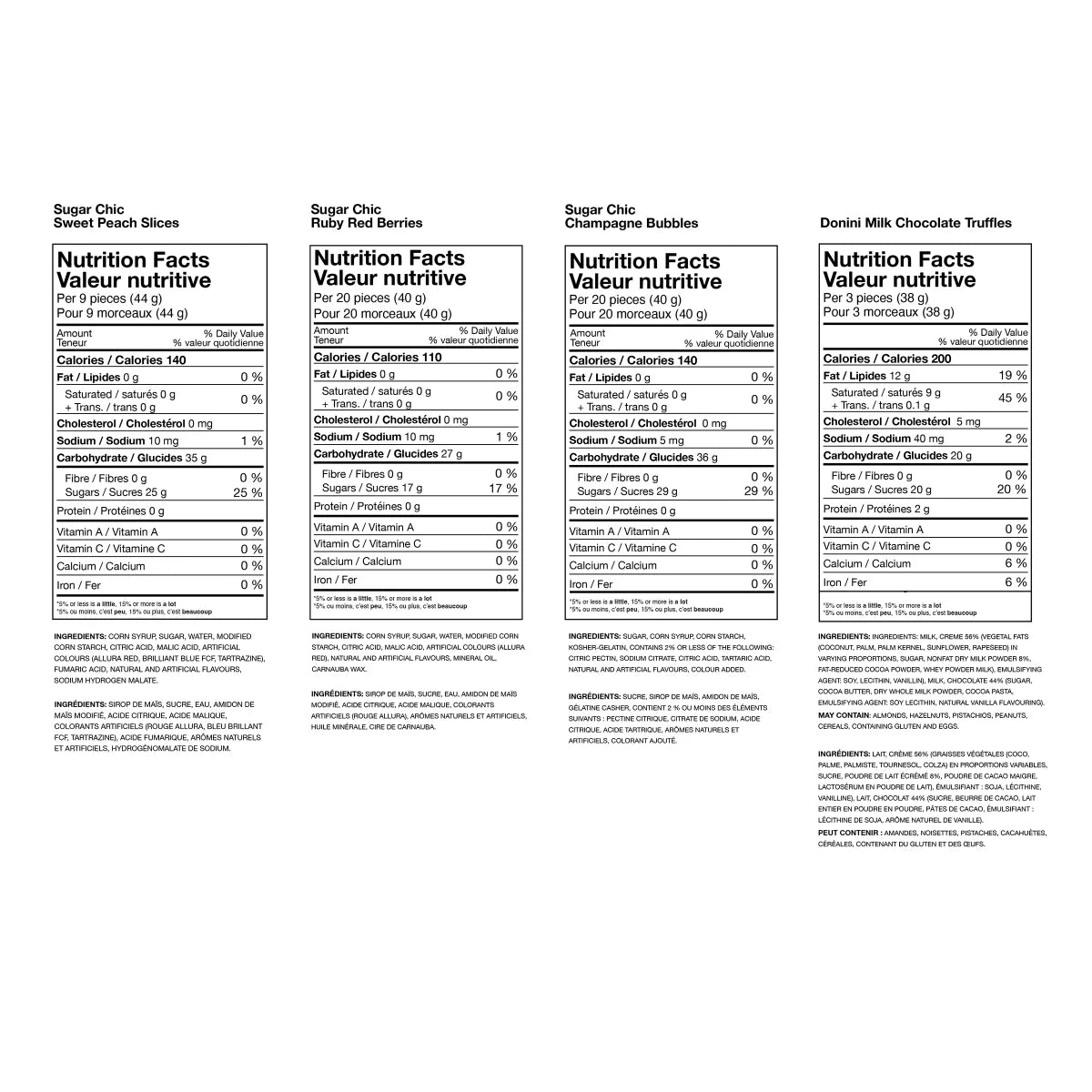 Delight in an exquisite selection of gourmet treats with our luxurious white magnetic box. This elegant gift includes the tangy zing of Sour Watermelon, chewy Gummi Bears, Gnarly Sour Grapes, and Sweet Peach Slices. Savour the richness of Ruby Red Berries and Champagne Bubbles, alongside the decadent Donini Milk Chocolate Truffles. Perfect for any celebration, this curated assortment promises a symphony of flavours that will indulge and impress.