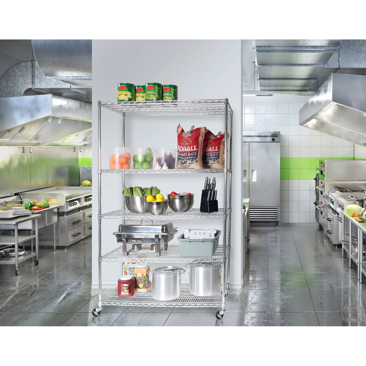 This NSF certified commercial 5-shelf steel wire shelving unit can easily organize any space or room. Perfect for homes, offices, garages, warehouses, kitchens, restaurants, file rooms, and any other room you need to organize. The shelf capacity is 227.3 kg (500 lb.) with wheels for convenient mobility.