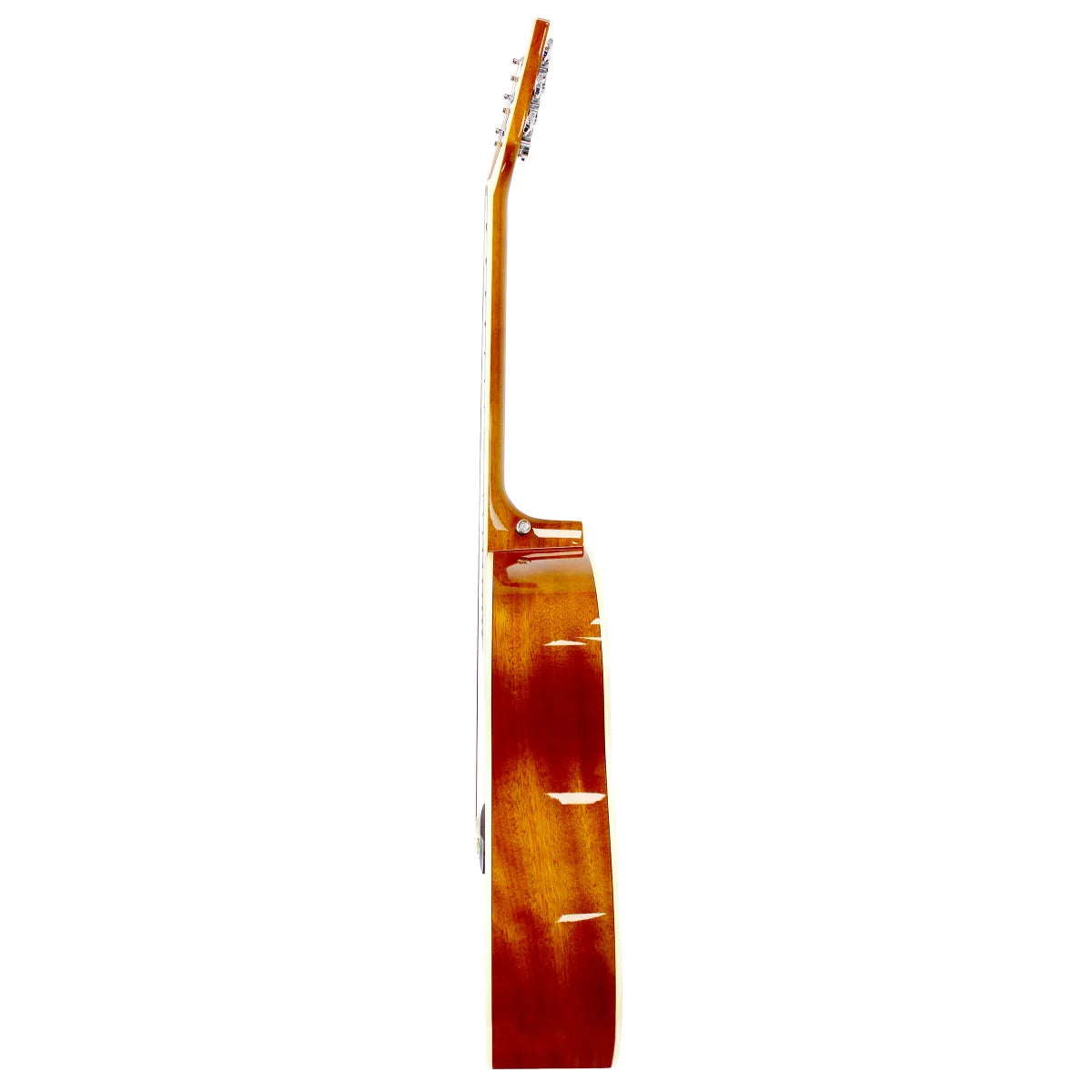 The Washburn Premium Acoustic Guitar Pack, featuring a stunning quilted maple top in Sand Burst, is the ultimate full-size dreadnought package for musicians. The package includes a high-quality acoustic guitar with an Okoume wood back and sides, Tech wood fingerboard, and chrome die-cast machine heads. It also comes with a clip-on electronic tuner, nylon strap, guitar stand, gig bag, replacement strings, and guitar picks, offering everything you need to start playing. Perfect for beginners and seasoned players alike, this set ensures ease of tuning and durability.