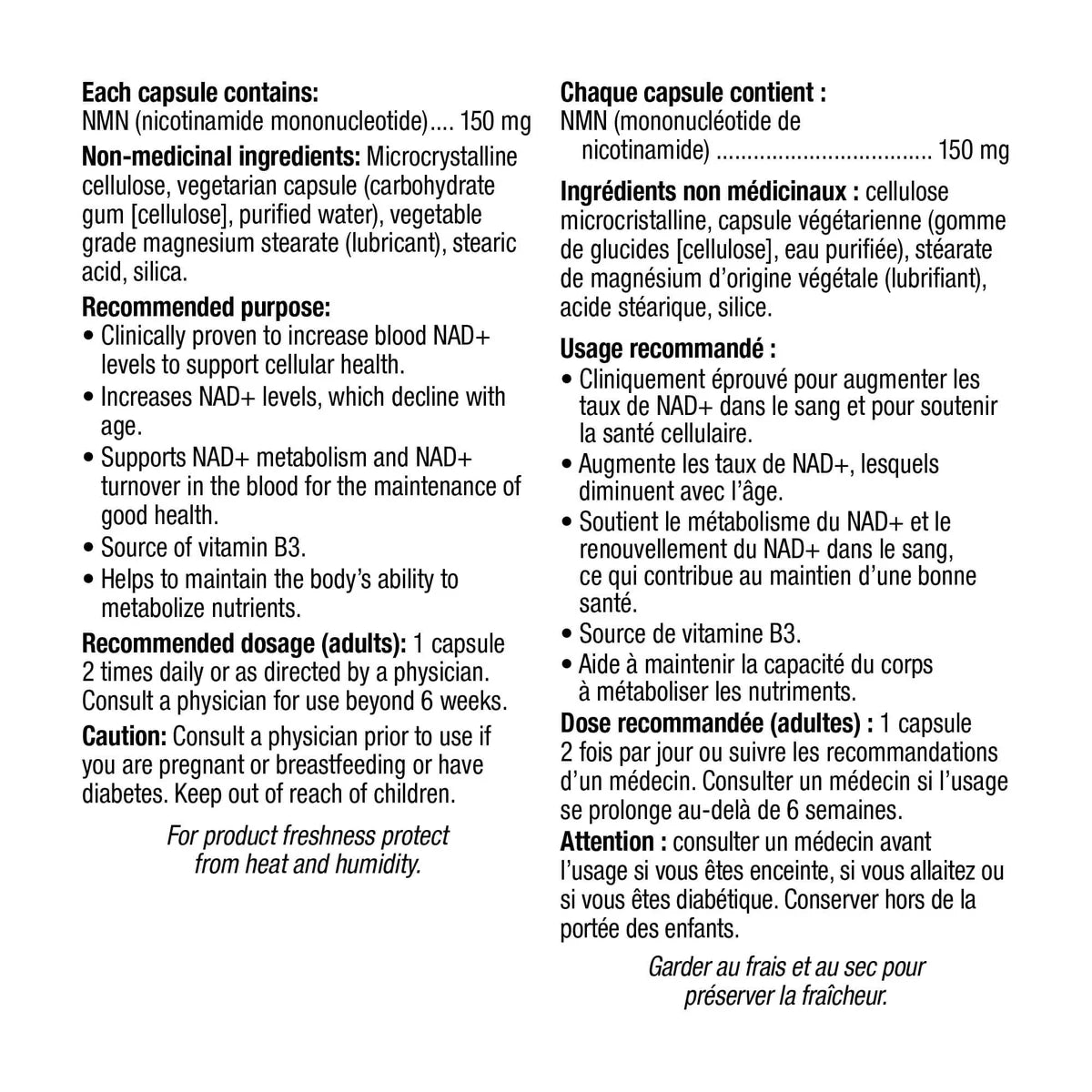 - Each capsule contains - NMN (nicotinamide mononucleotide)...........................................................................150 mg