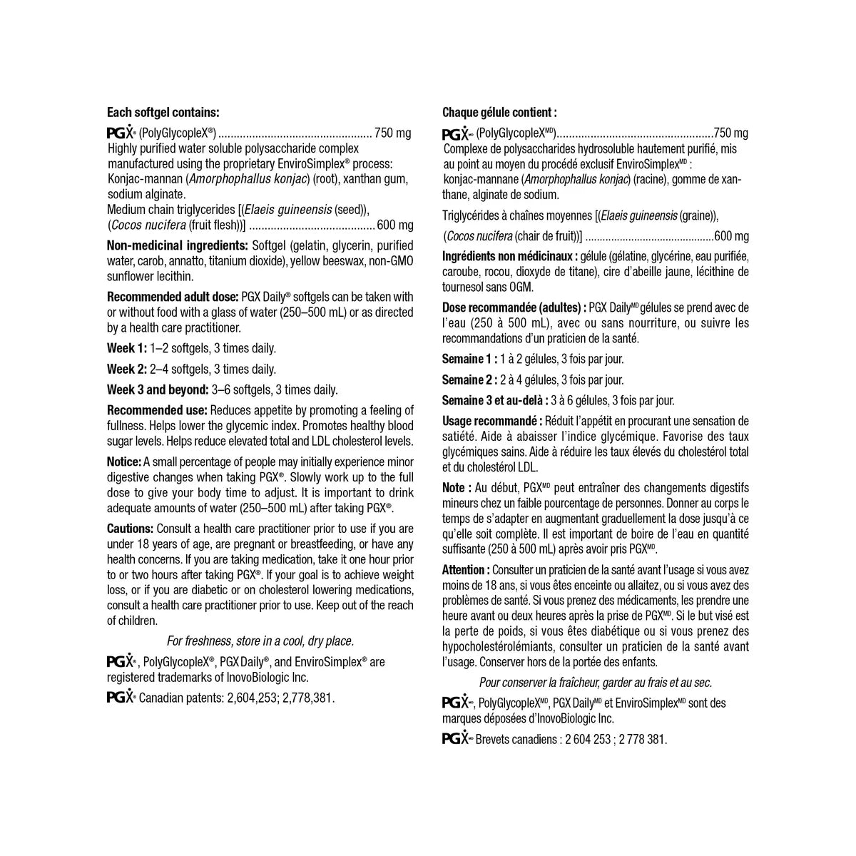PGX is a novel functional fibre made from a blend of natural, highly viscous plant fibres (konjac, sodium alginate, and xanthan gum) that work together in a number of ways. PGX Daily contains PolyGlycoplex®, also known as PGX, a patented ingredient suspended in a matrix of medium-chain triglycerides (MCTs). PGX helps lower the glycemic index, contributes to healthy blood sugar levels, and helps reduce total cholesterol.