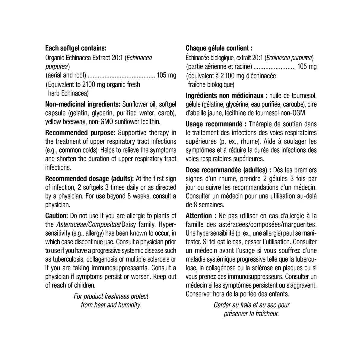 • 20:1 fresh herb extract provides the equivalent of 2100 mg of fresh echinacea