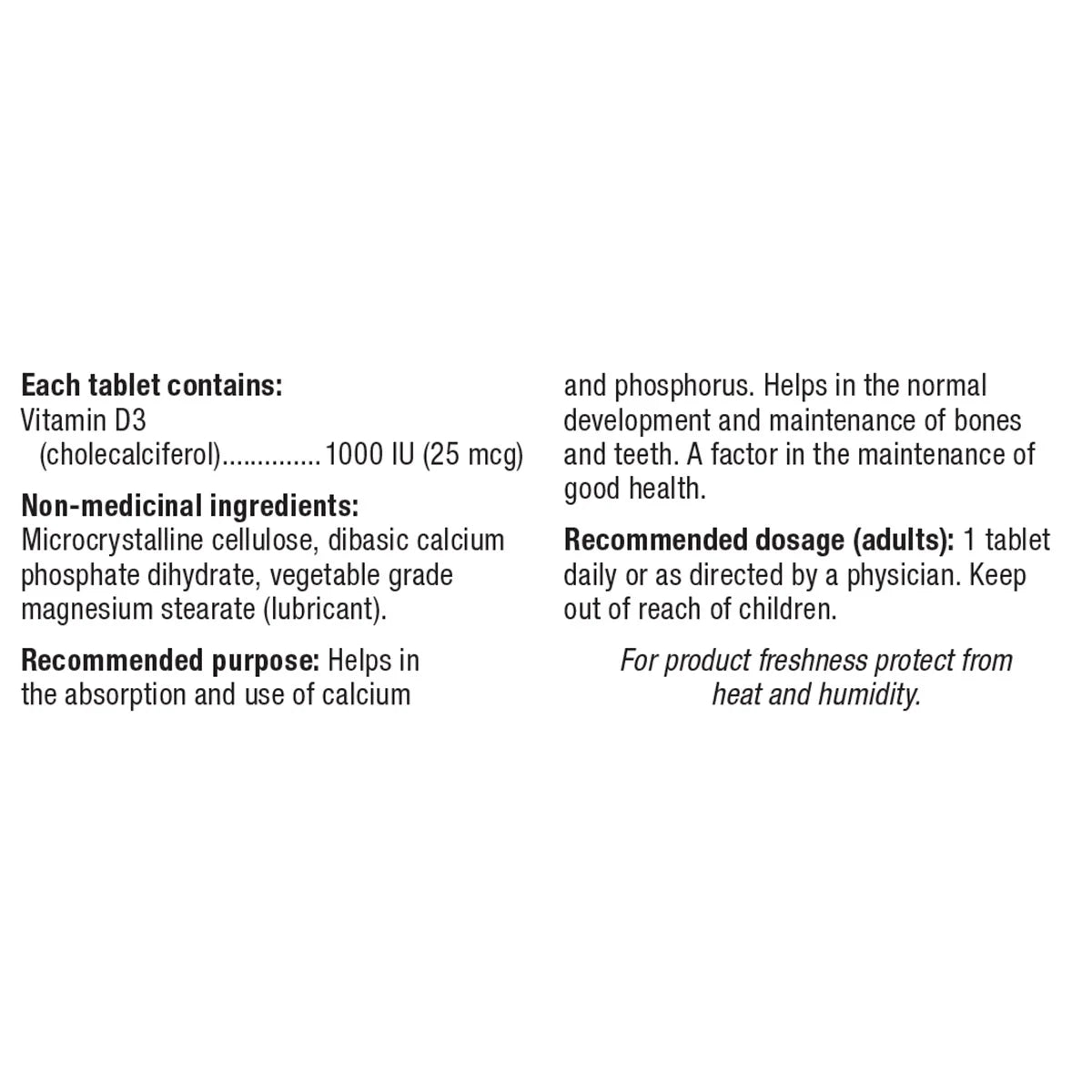 - 1000 IU (25.0 mcg) of vitamin D3 per tablet