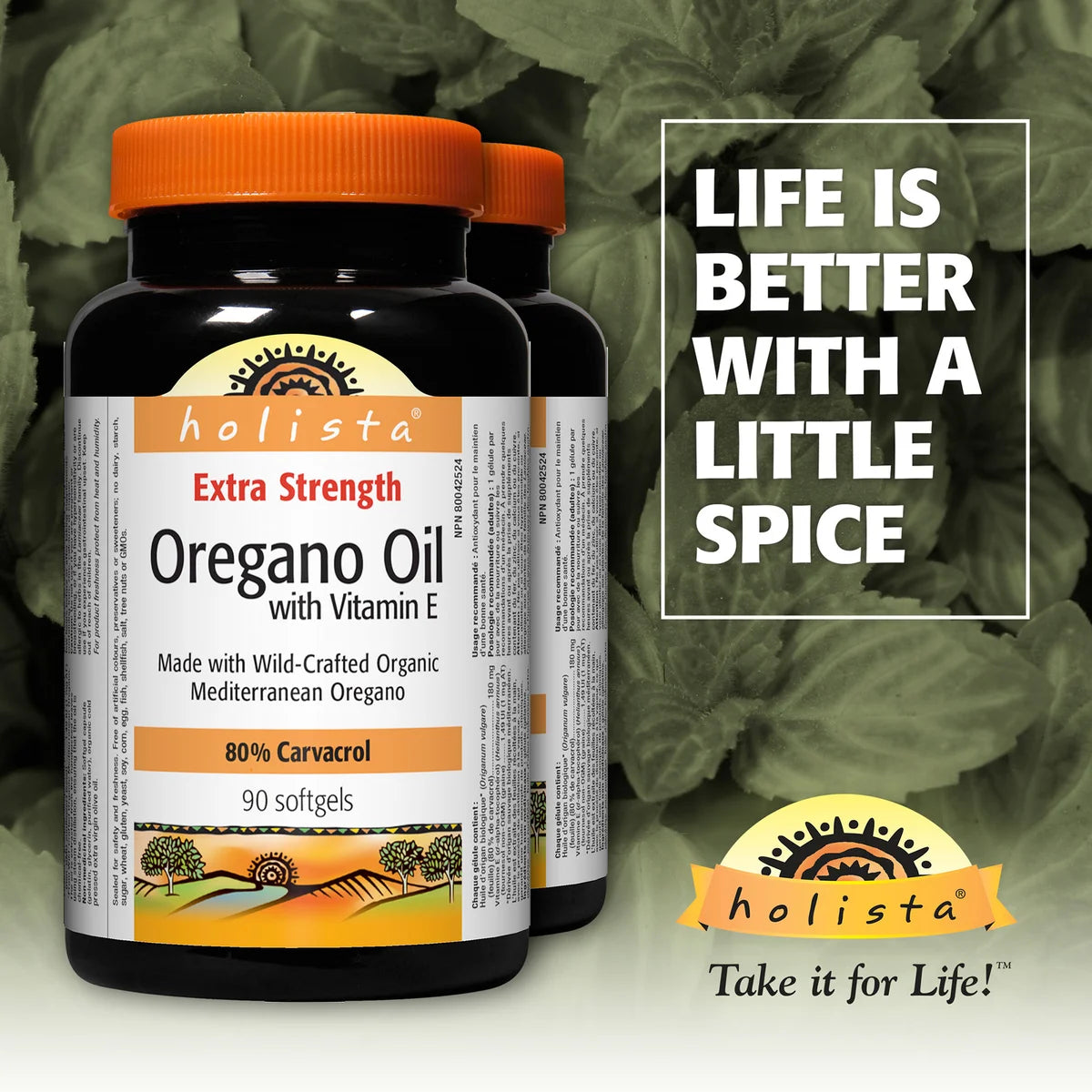 Holista Extra Strength Oregano Oil with Vitamin E provides 180 mg of wild-crafted Mediterranean oregano oil per softgel, standardized to 80% carvacrol, a potent antioxidant. It also includes 1.49 IU of vitamin E to help reduce oxidative stress and free radical damage. Formulated with organic cold-pressed extra virgin olive oil, this supplement is non-GMO, gluten-free, and free of artificial additives. Ideal for supporting overall health and immune function. Take one softgel daily with food. NPN: 80042524.