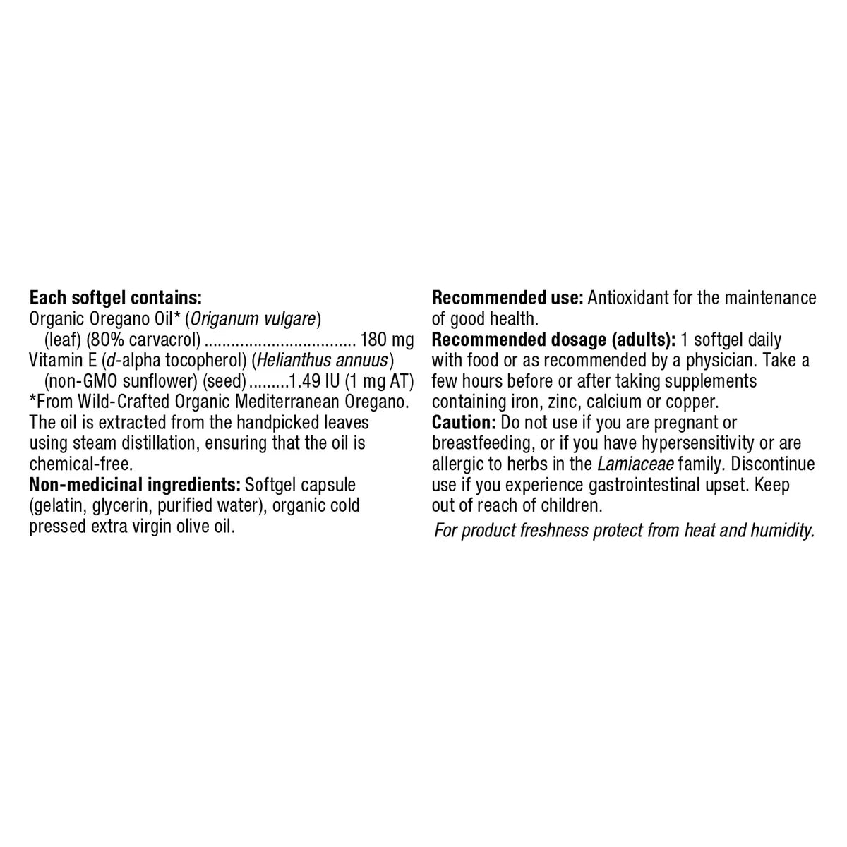 - 180.0 mg of origanum vulgare per softgel